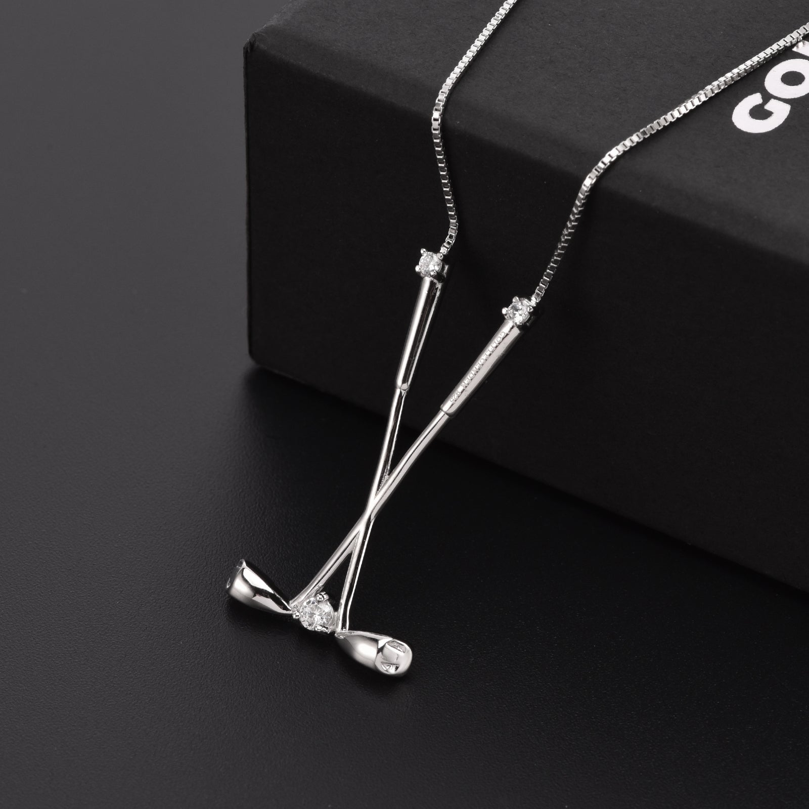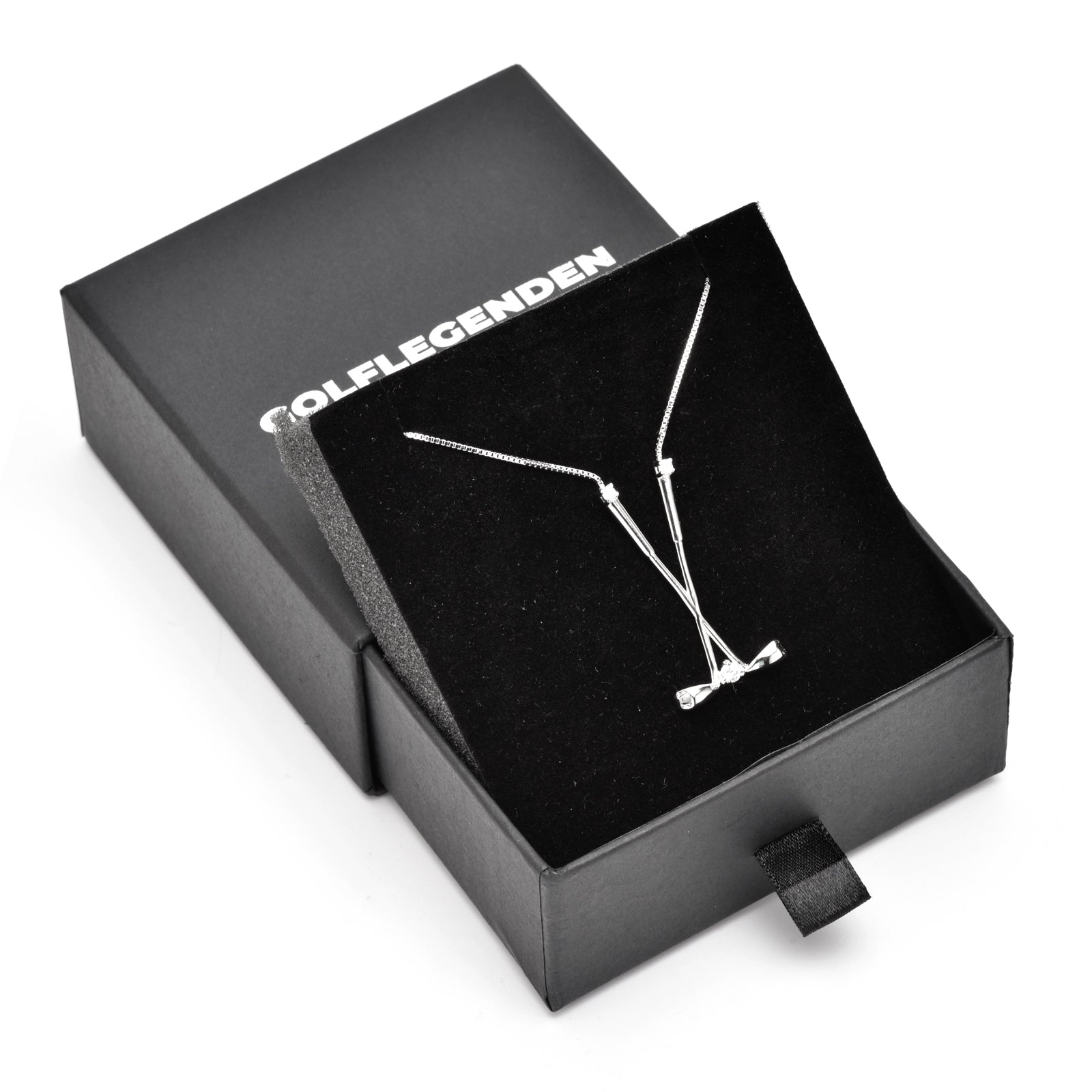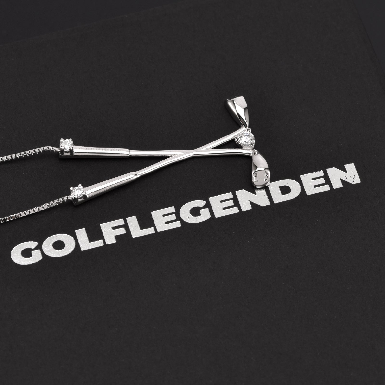 Die Kette und der Anhänger mit zwei gekreuzten Golfschlägern sind aus hochwertigem 925 Silber gefertigt und rhodiniert (schützt vor Anlaufen). Die drei weißen Zirkonia Kristalle unterstreichen die Wertigkeit der Halskette.