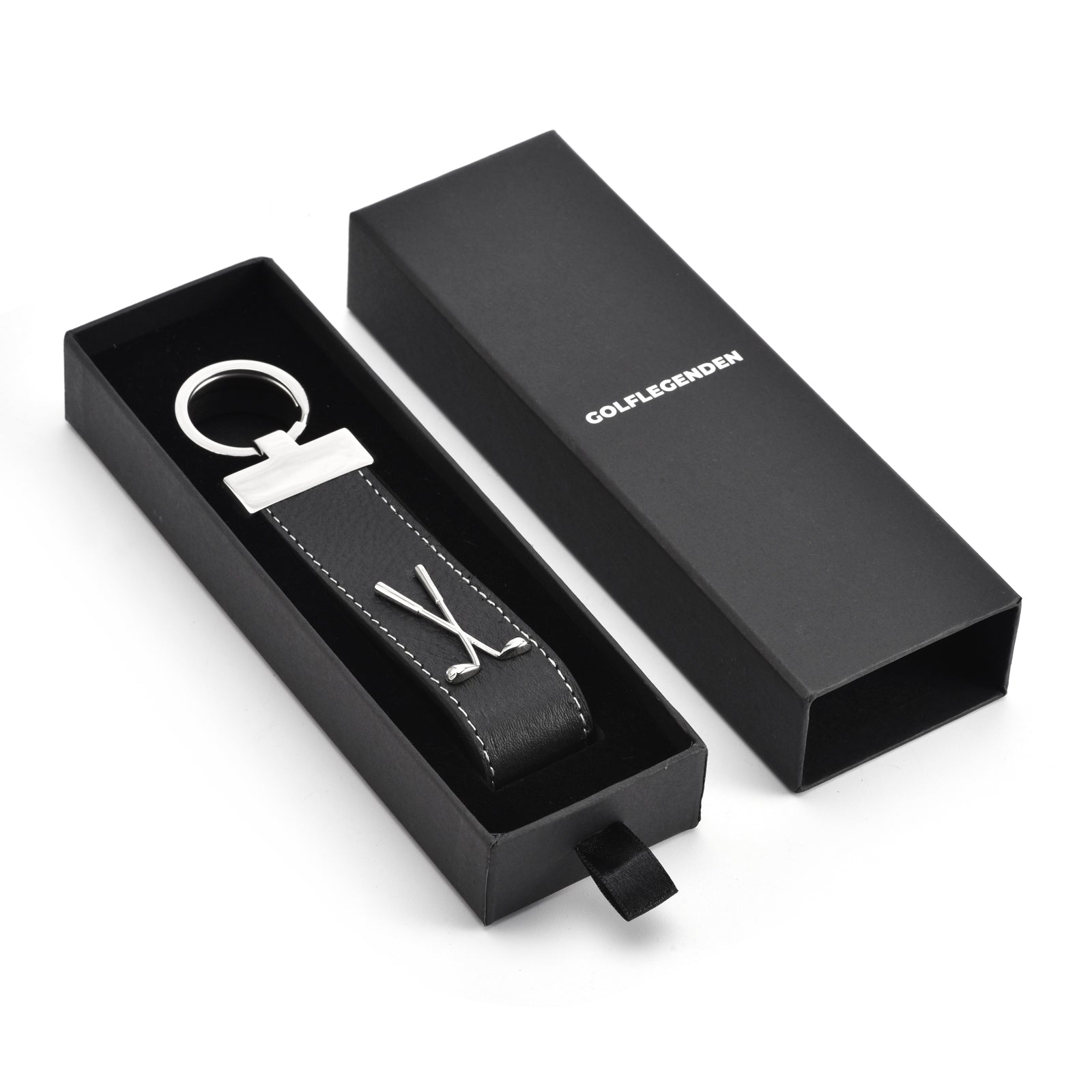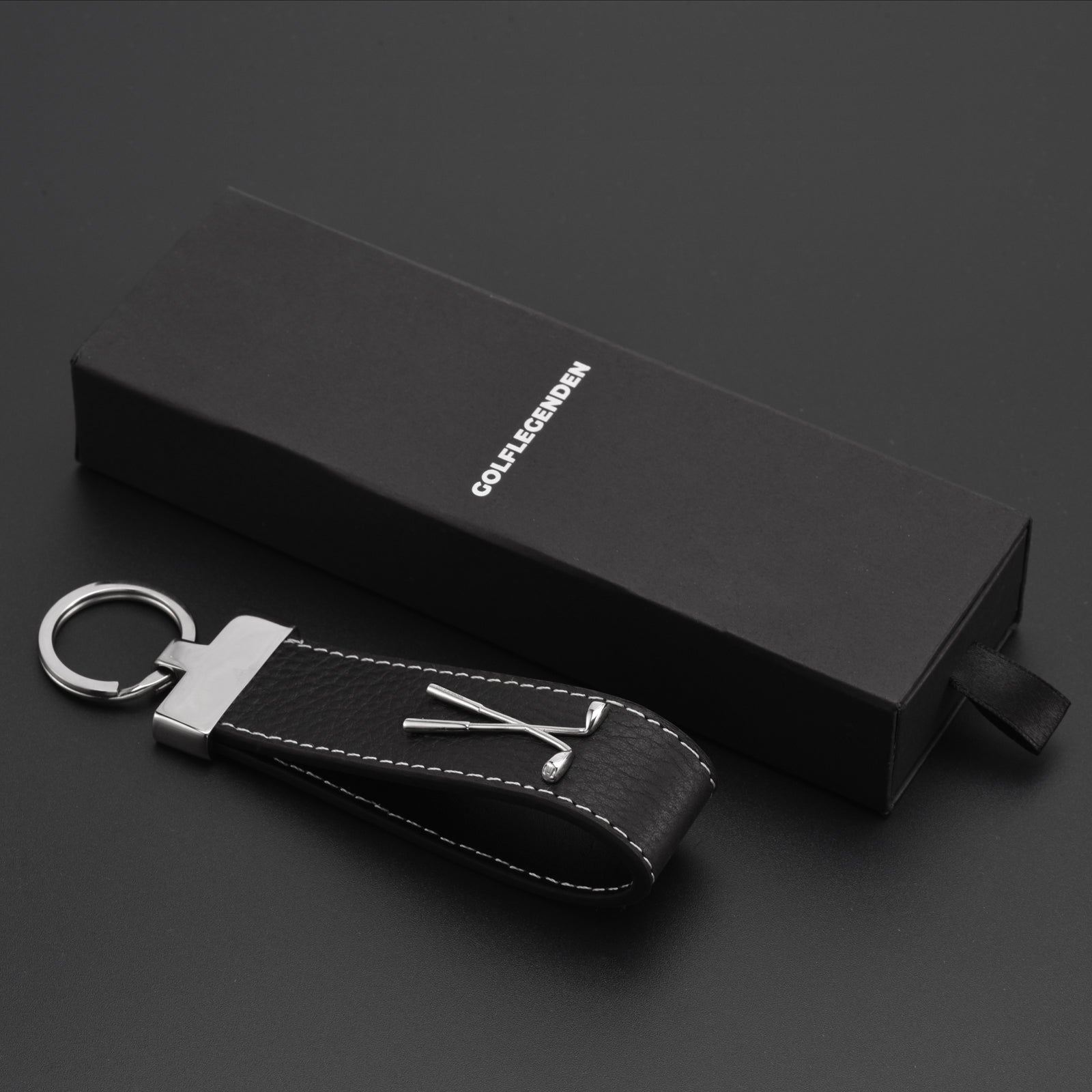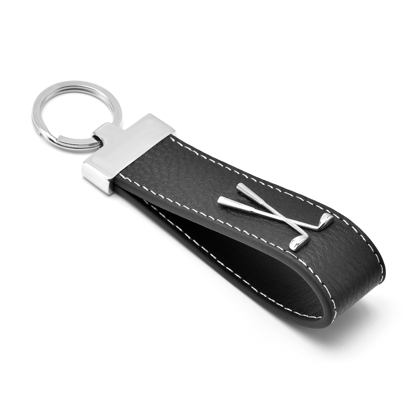 Golf Schlüsselanhänger Leder & Edelstahl - schwarz